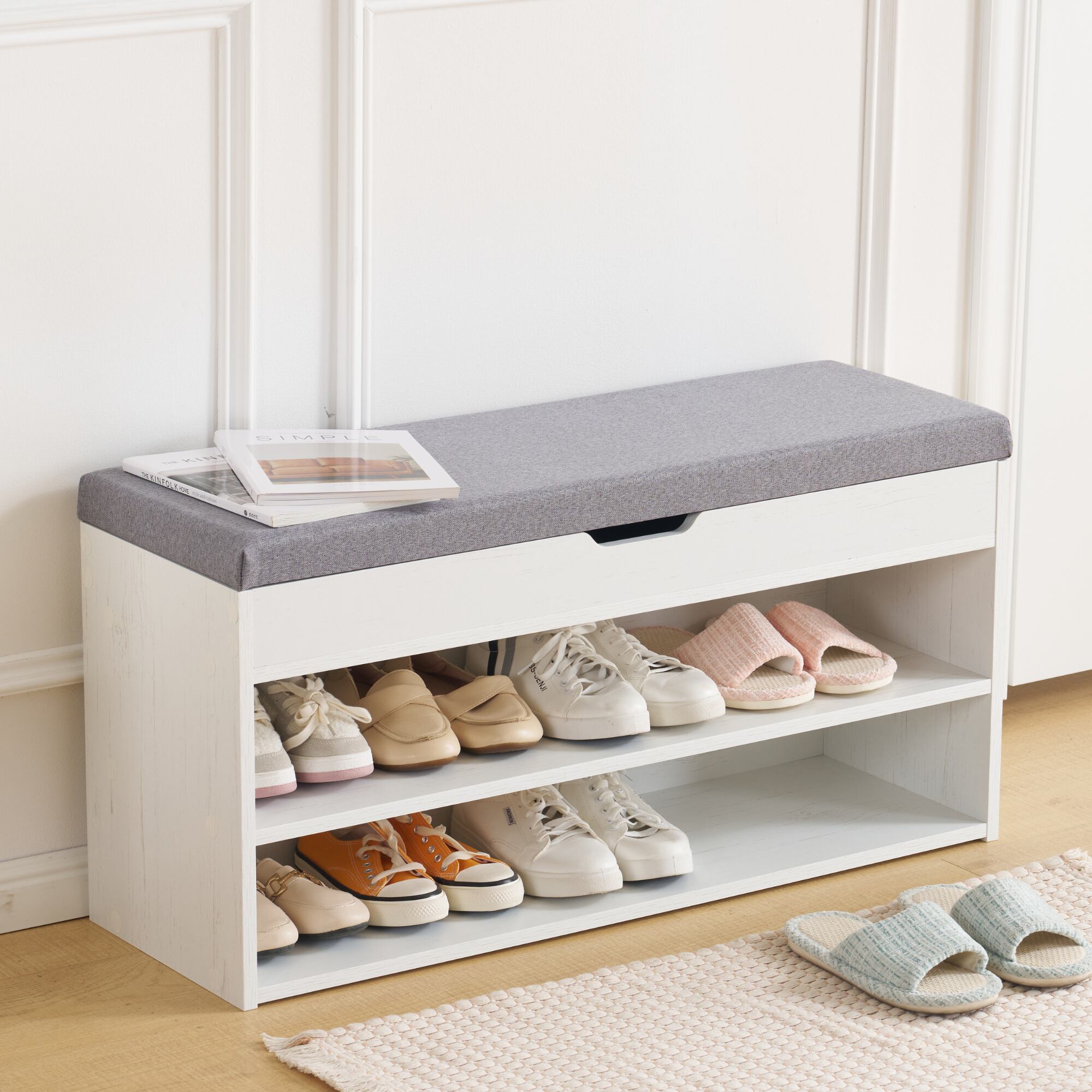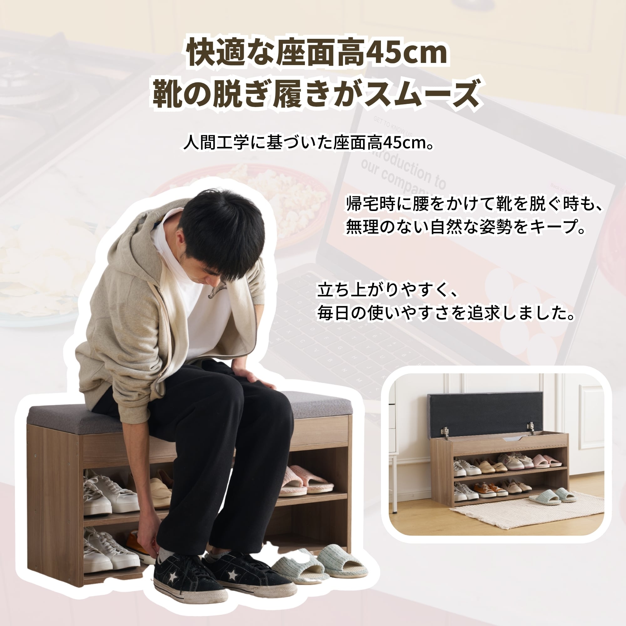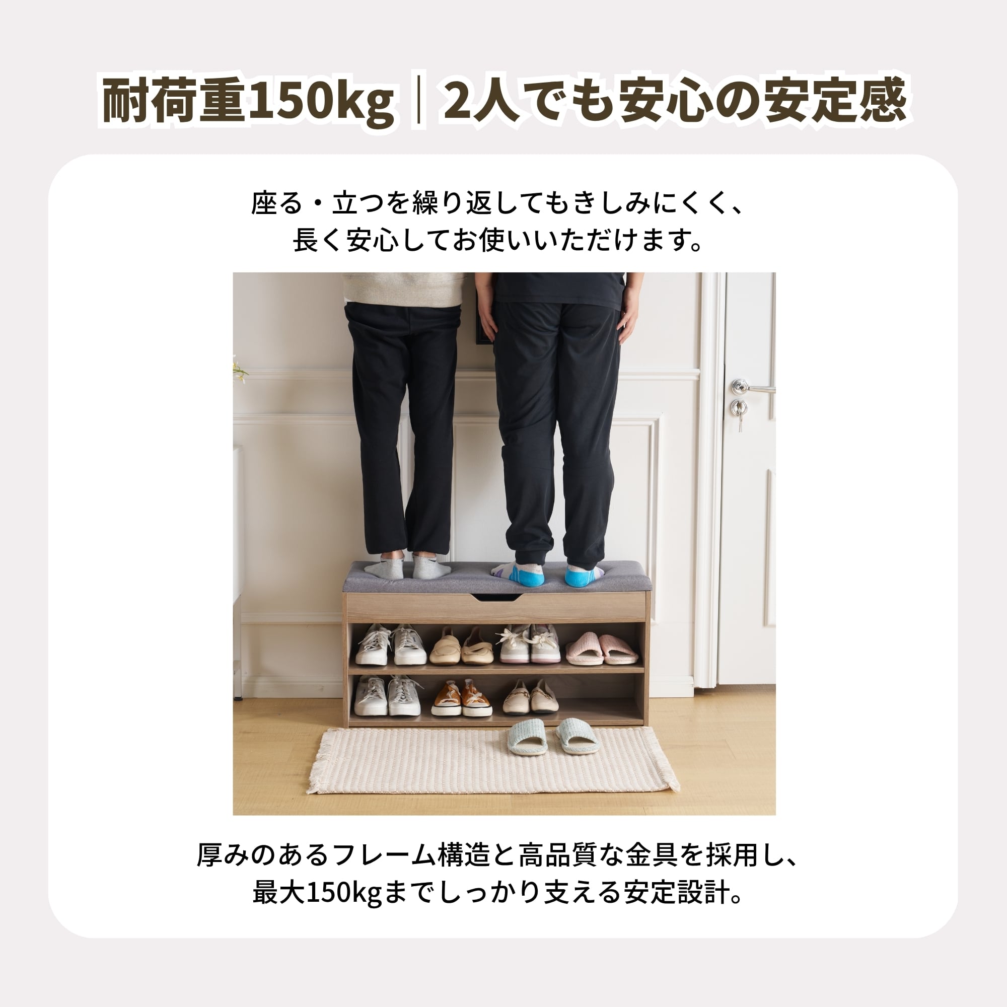 玄関ベンチ シューズラック 玄関椅子 玄関収納 収納ベンチ 下駄箱 靴箱 収納 小物収納 靴収納 省スペース 靴棚 スツール 靴入れ 収納ボックス付き 耐荷重150KG スツール 椅子 おしゃれ フットスツール 足置き ソファースツール コンパクト 来客対応チェア 玄関イス マルチに使える 高反発クッション座面 静音ヒンジ | Mico Interior
