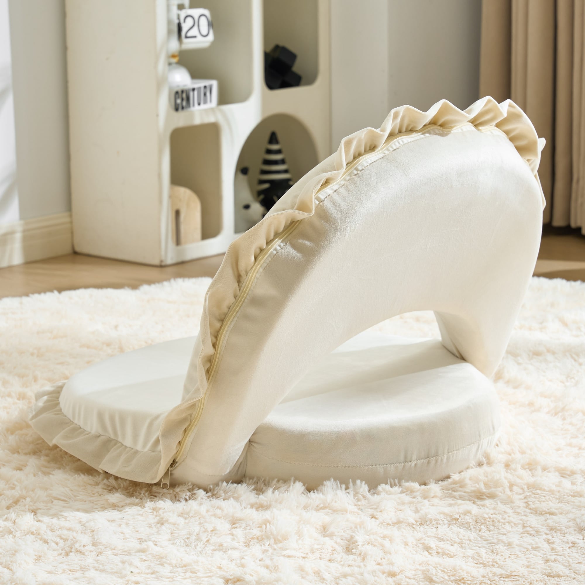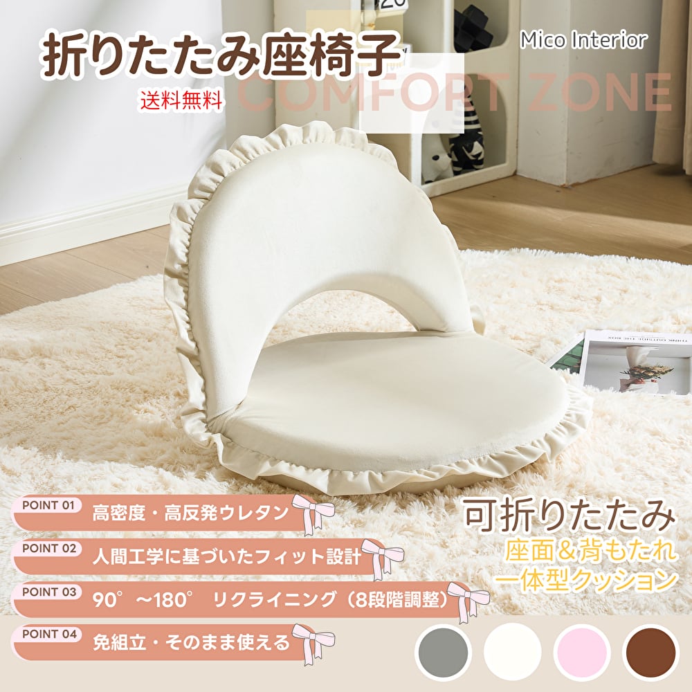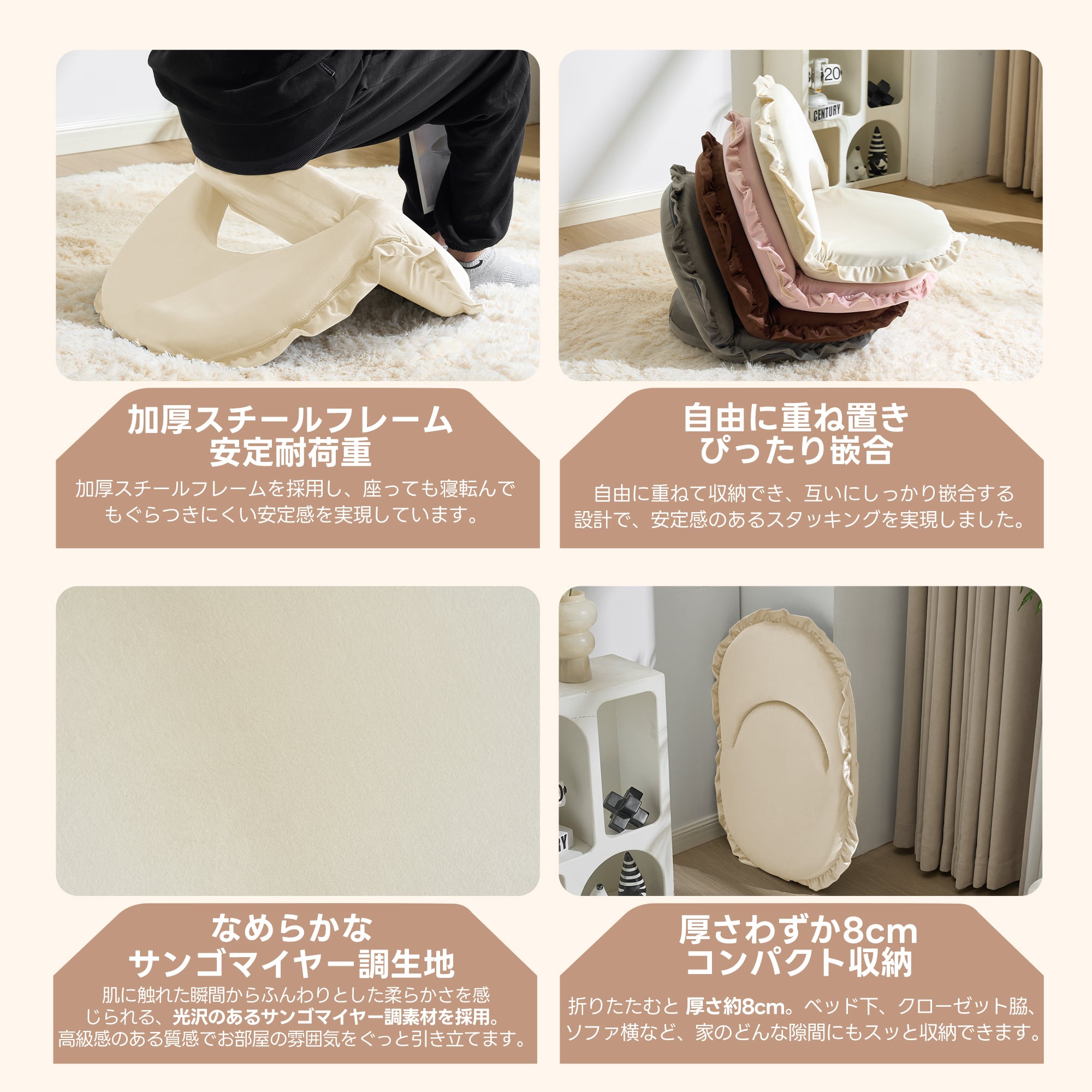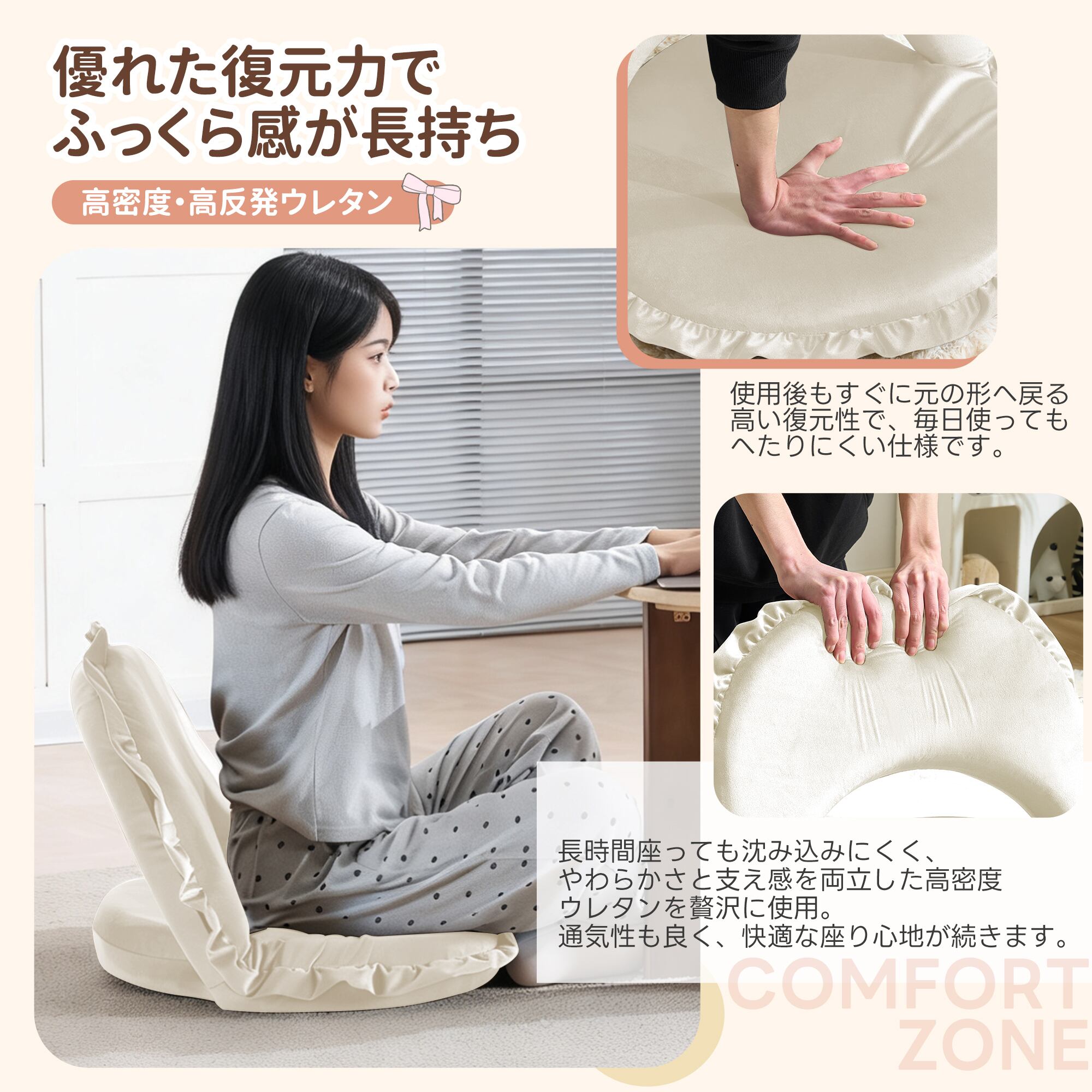 ふわふわ可愛い フリル座椅子|8段階角度調節・2WAY|1人掛け コンパクト フロアソファ 置くだけで部屋が可愛くなる。 自分時間を甘やかす、ふわふわ座椅子