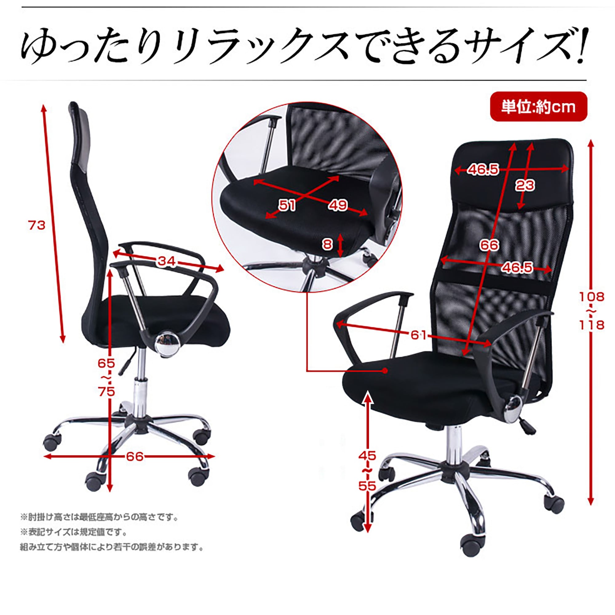 サイズ 幅61(アーム含)×奥行51×高さ108-118cm