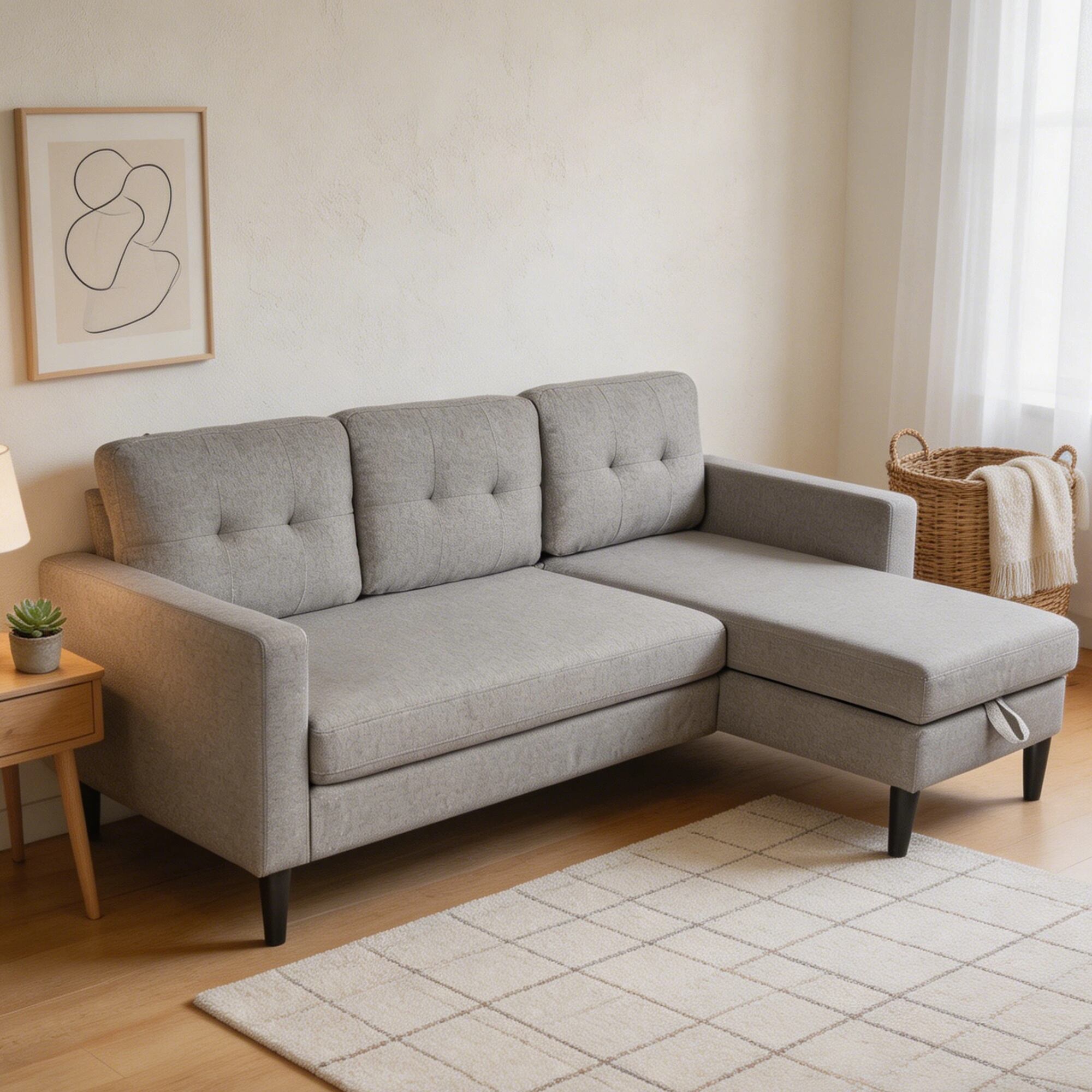 ソファベッド 収納付き カウチソファ 3人掛け 左右入替可能 コンパクト 多機能ソファ リクライニング 北欧風 ワンルーム 一人暮らし