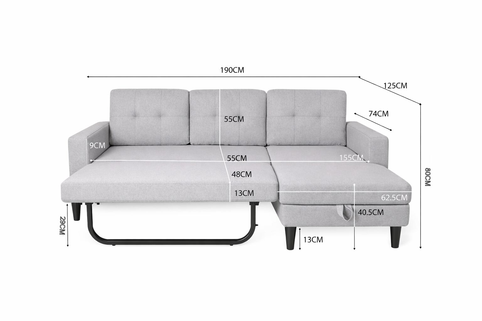 商品の寸法 125奥行き x 190幅 x 80高さ cm
