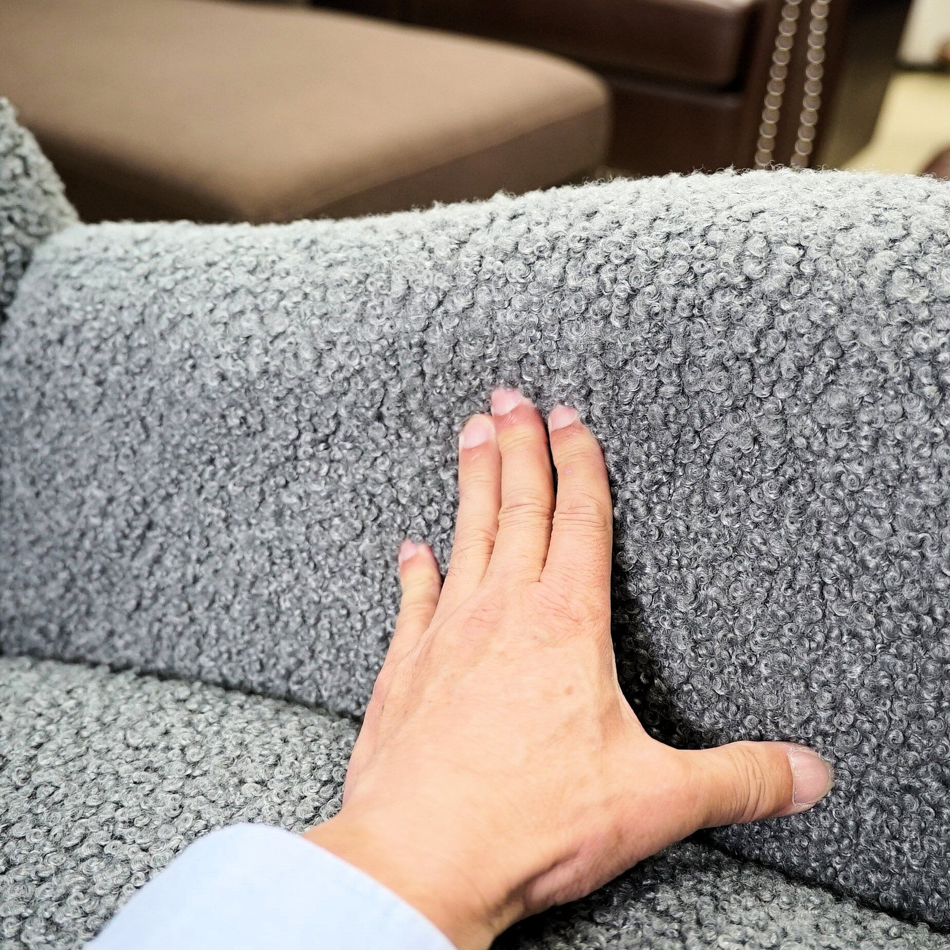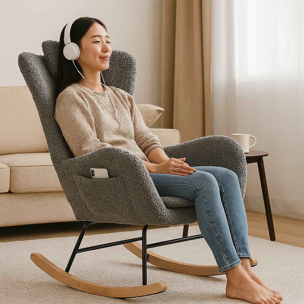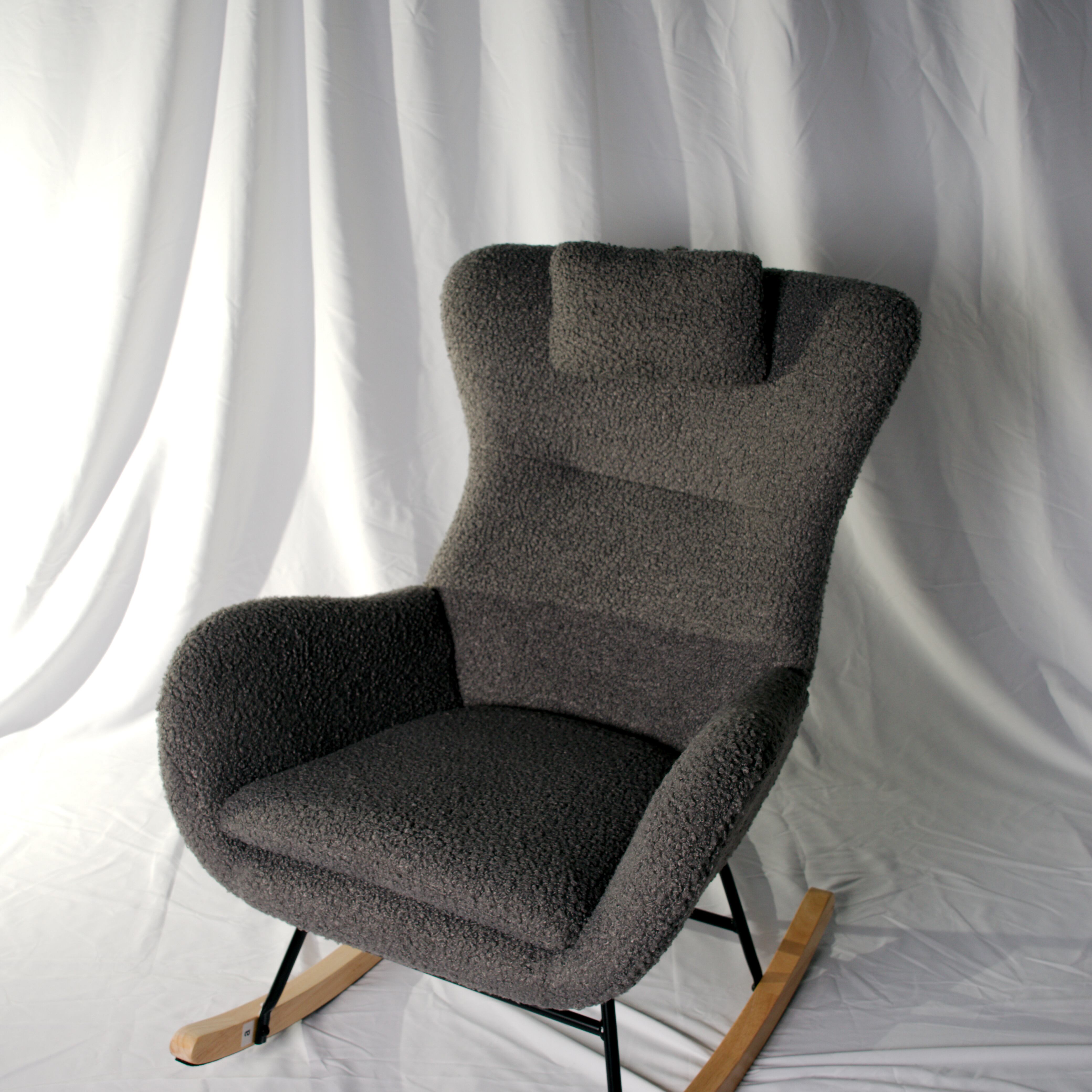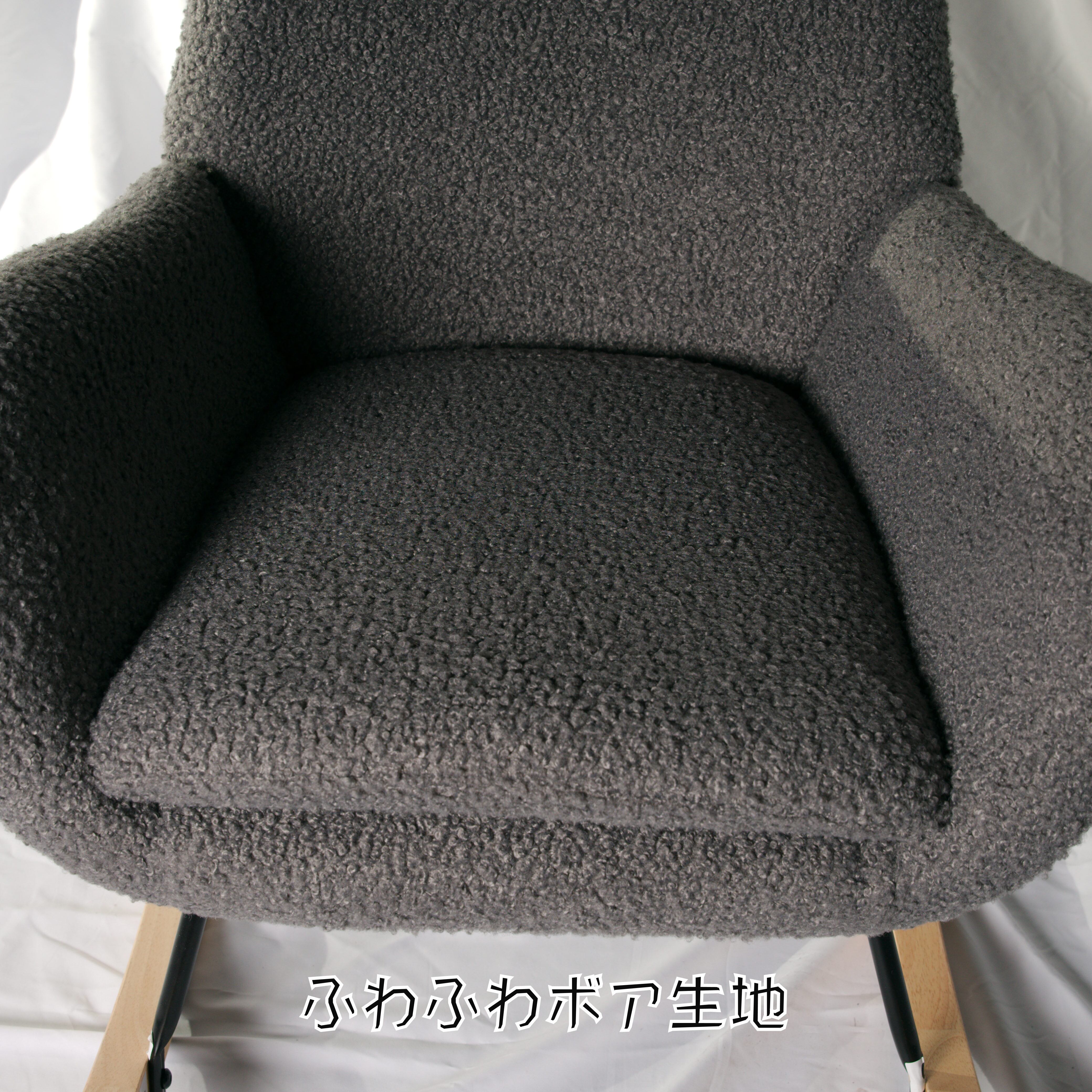 ふわふわボア生地の北欧風ロッキングチェア(グレー/ベージュ)小物収納付き
